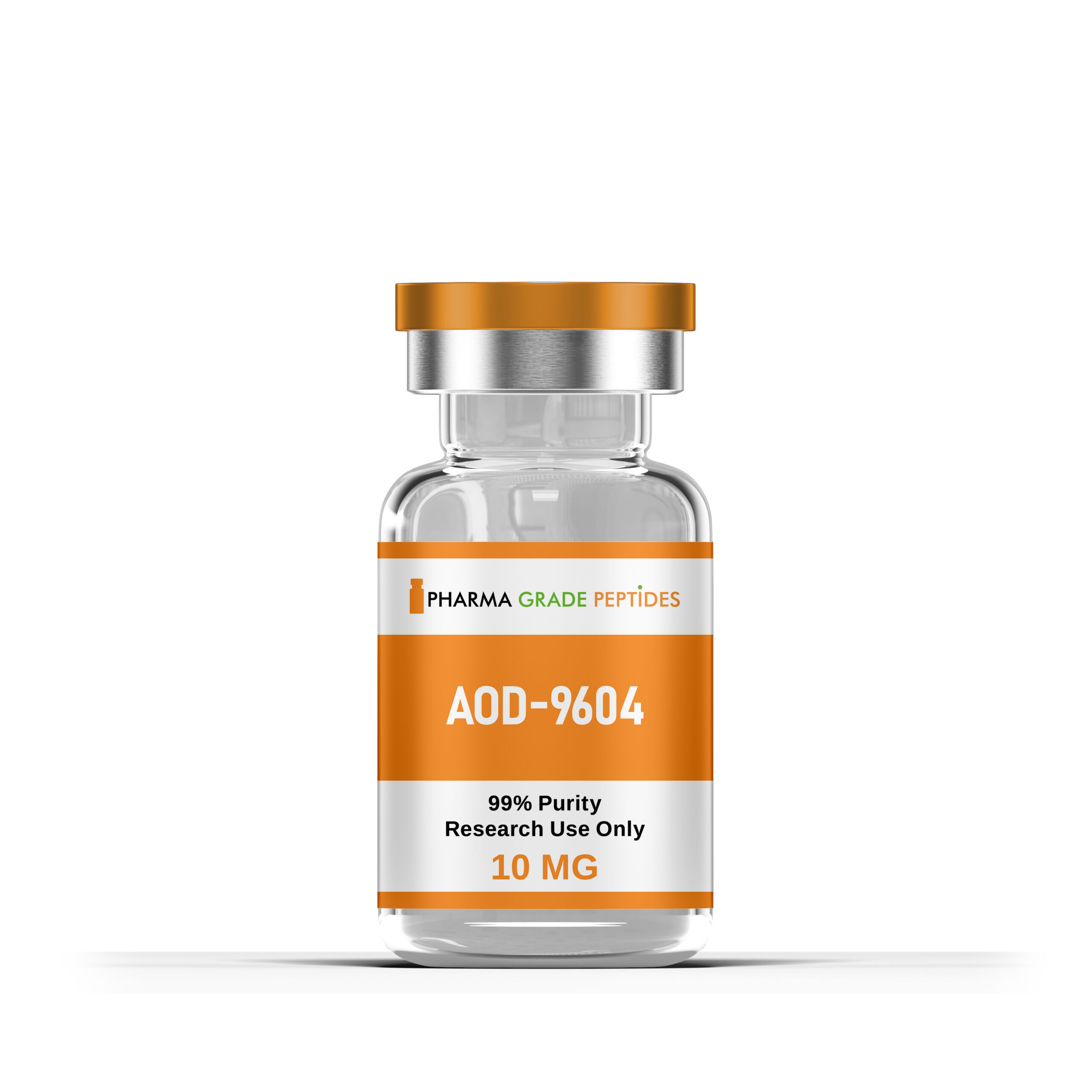 AOD-9604 is a synthetic peptide derived from a fragment of human growth hormone and studied in laboratory research for its role in fat metabolism pathways.